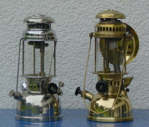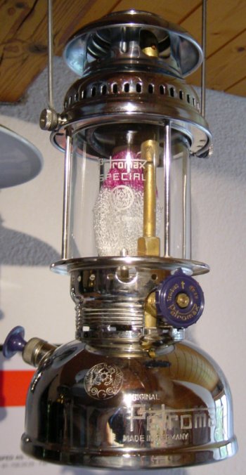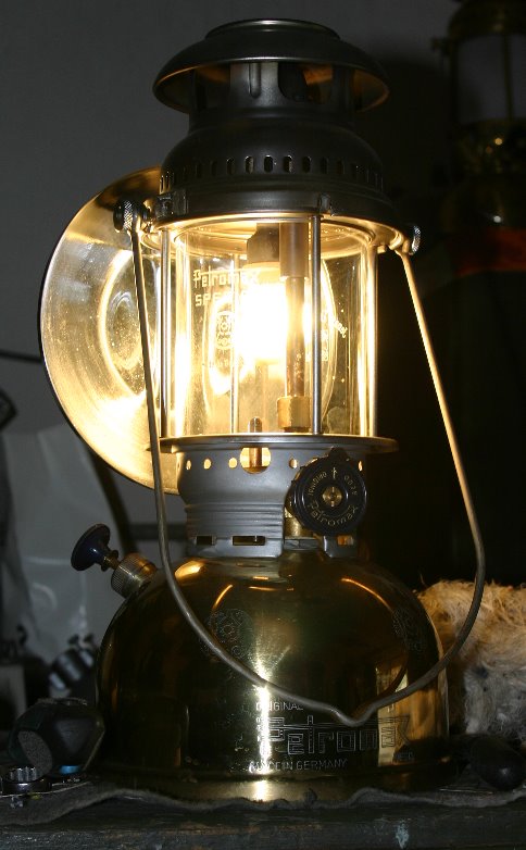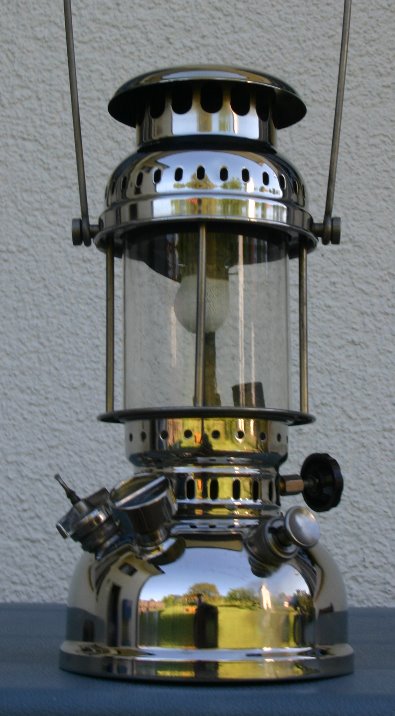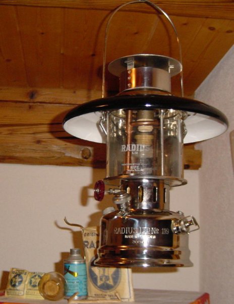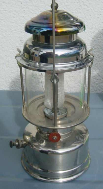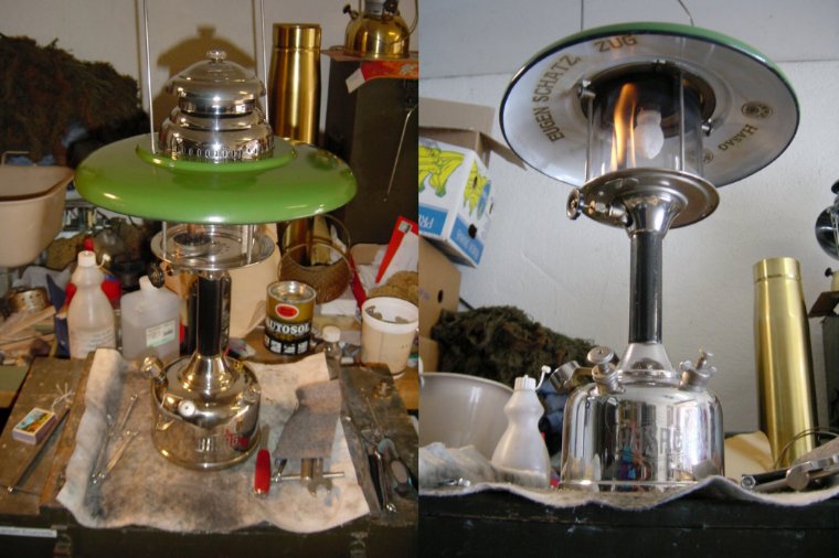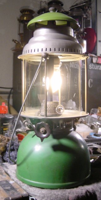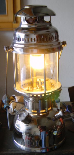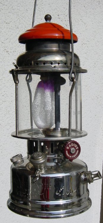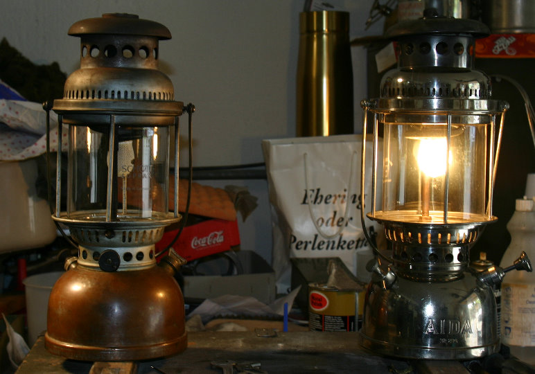 Oben seht Ihr eine meiner Schweizer Petromaxen; sie war der Beginn dieser Aera. Sie ist bis jetzt die Lampe (neben der Hasag 551 und Radius 119) die immer (wirklich immer) anspringt ohne sich zu sträuben.