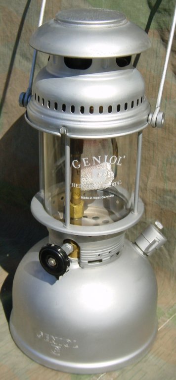 Endlich konnte ich mich doch dazu entschliessen eine Schweizer Ausführung der Geniol (Benzin) zu kaufen. Die Lampe ist in einem neuwertigem Zustand und hat auch schon die ersten Leuchtminuten hinter sich.