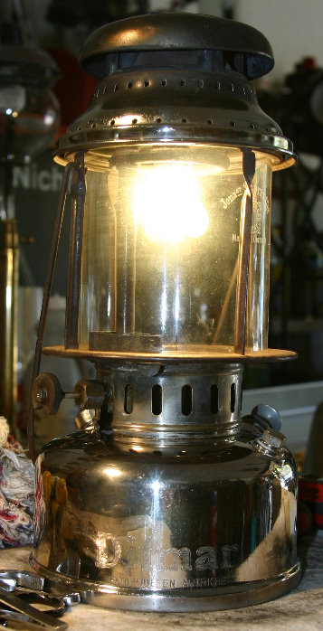 Auch noch eine Vorkriegslampe ist diese Optimus 200. Nicht so schön wie die 300'er, doch laufen tut auch sie bestens.