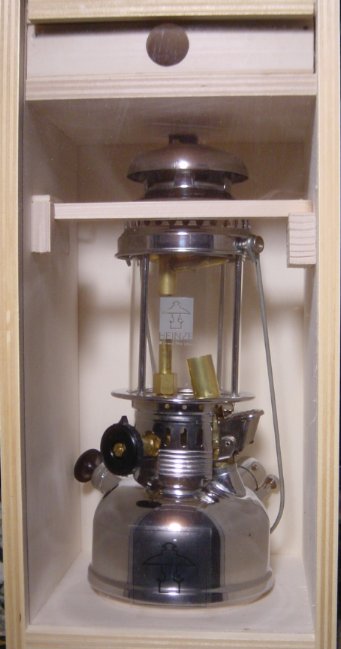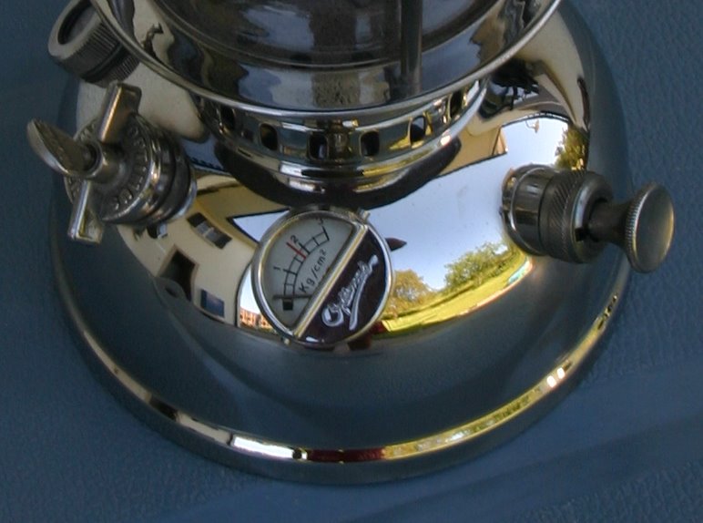 Von nach dem Krieg stammt diese Optimus 1200 mit Rapidhandradversion. Zusätzlich habe ich dieser Lampe noch ein original Optimus Manometer verpasst.