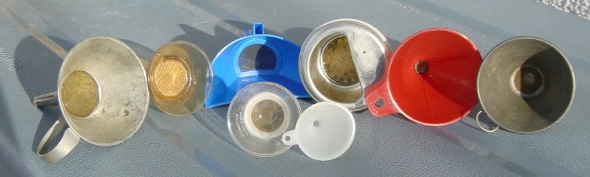 Hasag-, Radius-, Petromax-, Optimus- (vorne), Brennsprit- (vorne), Tilley-, Standard- und nochmals ein Hasagtrichter.