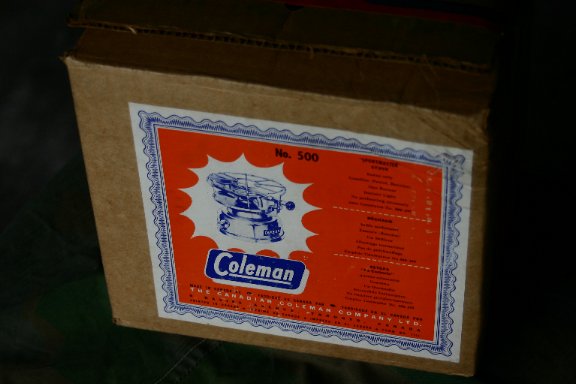 Mein erster Kocher aus Canada. Es ist ein Coleman 500 "Sportman". Das Baujahr ist 1960 und er ist einen tadellosem unbenutztem Zustand. Auch der Originalkarton ist sehr gut erhalten.