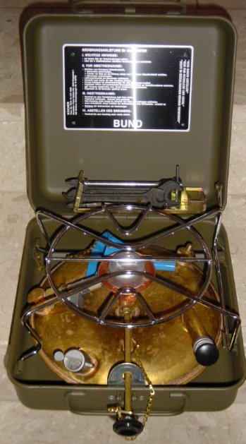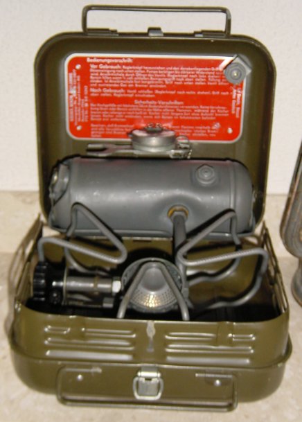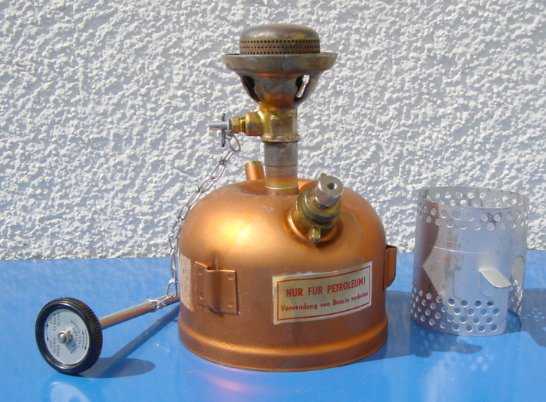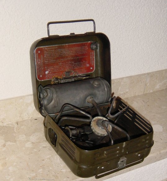 Der Heinze Geniol Kocher der deutschen BW, ausser auch hier Probleme mit dem Pumpenbodenventil (das nun mittels eines O-Rings eingeschraubt geht) alles Perfekt; etwas grösser als der Benders, aber immer noch handlich. Der ideale Kocher zum Campen bis zu 6 Personen. Weil ich den ersterwähnten Kocher nun für unterwegs brauche, habe ich mir nochmals einen unbenutzen, mit nicht mattem Tank, der schön glänzt, für meine Sammlung besorgt.