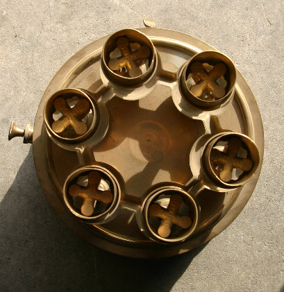 Sievert Modell 290. So richtig "Dampf" gibt dieser Kocher nicht, doch massiv wie er ist, ist er sicherlich für Stundenweisen Betrieb ohne Ueberhitzung ausgelegt. Meine Vermutung wurde mir bestätigt, dass solche Kocher für das Erhitzen/Warmhalten von z.B. Blei gebraucht wurden. Blei hat ja einen tiefen Schmelzpunkt von um die 320 Grad C. Der Kocher ist für den Betrieb mit Petrol gedacht. Die Kochauflagefläche ist aus Gusseisen und äusserst massiv.